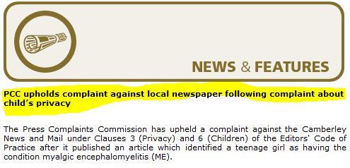 The newspaper’s March 2 story was about a friend of the girl’s, who was raising money by “selling cakes at a farmer’s market,” to donate to an organization that researches the girl’s medical condition, myalgic encephalomyelitis (ME). The News and Mail ran a photo of the two girls and both their names, but had gotten the medical information from the friend – not the girl who had it, the PCC explained. And, the parents of the girl with the medical condition didn’t give the newspaper the OK to report on their child in any way.