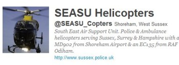 The tweets came from @SEASU_Copters, an account for South East Air Support Unit’s police and ambulance helicopters with more than 2,000 followers.
