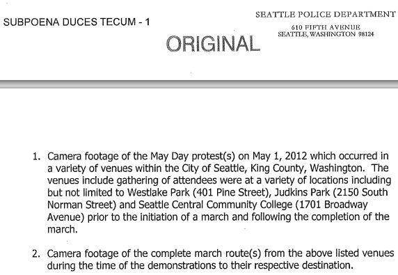 As we wrote May 8, the Seattle police subpoenaed Seattle TV news KIRO-7 and five other news outlets (KOMO-4, KING-5 TV, KCPQ-13 TV, the Seattle Times and the Seattle Post-Intelligencer) for footage from May 1 protests.