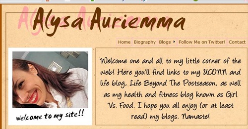 Auriemma now has her own website (here) on which she has two blogs — “Girl vs. Food” and “Life beyond the Postseason.” In her “Life Beyond the Postseason” blog (here), she blogs about her father’s team. While a search of the Courant’s website doesn’t produce her blogs, she is quoted in a recent column (here).