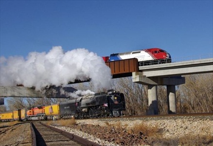 According to Howell’s column, the fake image pictured a “commuter train passing over Union Pacific steam engine No. 844 as both approached Ogden,” Utah. The Standard-Examiner is a daily newspaper in Ogden, Utah with a circulation of about 62,000 copies, according to Mondo Times.