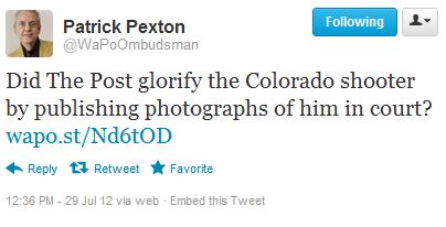 Washington Post readers complained that the newspaper’s publishing four front-page pictures of James Holmes gave “attention” or “potential for copycats,” ombudsman Patrick Pexton wrote.