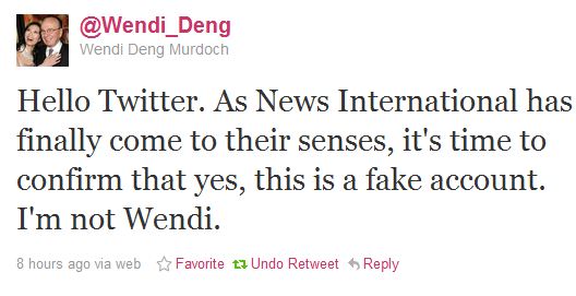 “This article was deleted on 3 January 2012 after a News International spokeswoman said that the @wendi_deng Twitter account was fake.”