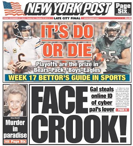 Twitter hoaxes abound, making false claims that certain celebrities are dead. Today’s New York Post front page is out of the same harmful playbook when it misleads readers into believing, with a headline and photo of the actress Dina Merrill, that she, not the actual “relative” of Merrill, was murdered.