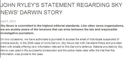 As iMediaEthics has written, Sky News fessed up last year to letting its reporter, Gerard Tubb, hack e-mail for Tubb’s 2008 report about Darwin, defending the hacking as in the “public interest.”