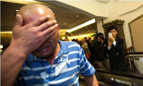 A “small handful” of readers complained about the Guardian‘s decision to publish a front-page photo of an emotional family member reacting to the news that the Malaysian authorities’ statement that the missing Malaysian 370 flight crashed in the ocean, Guardian corrections column co-editor Barbara Harper reported April 6.