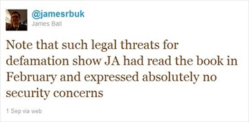 At the time of the book’s February publication, Assange alleged defamation and claimed he was bringing legal action forth against the Guardian, but the Guardian rejected those claims noting it hadn’t received any legal papers at least as of April 2011.