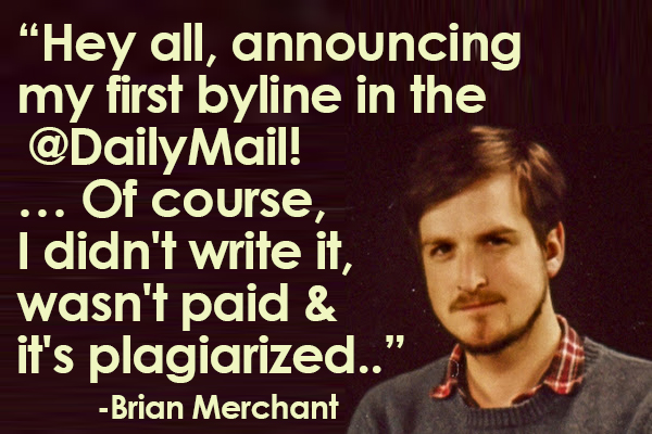 Brian Merchant, senior editor for Vice-owned site Motherboard complained on Twitter about the Mail lifting his recent article for Motherboard and oddly putting his name on the byline as co-writer with one of its staffers.